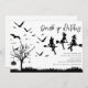 Join us for a wickedly good time at our adult Halloween party! Our theme is "Drink Up, Witches!" and the invitation sets the perfect tone with black silhouettes of an old tree, pumpkin, spider, and flying bats. Watch out for the three witches on their trusty broomsticks! The modern invitation template is set against a clean white background, making it the perfect invite for a girls' night this Halloween. Don't miss out on the fun!
