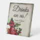 Drinks On Us | Dark Red Floral Goth Wedding Pedestal Sign