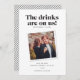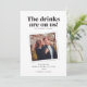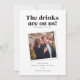 This funny wedding save the date card features the phrase "The drinks are on us - the hangover is on you" - sure to give your guests a laugh and a preview of the fun wedding party they won't want to miss. Customize it! Change the colours and fonts to match your wedding style!