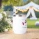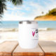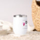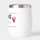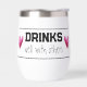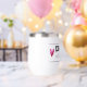 Designed with type, “DRINKS well with others”, is inside a ruled banner with two hearts, on either end. This quote makes this stemless wine tumbler a perfect birthday gift.