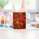 A painting in the Petrykivka style features vibrant red flowers and berries, depicted with intricate patterns and delicate brushstrokes. The flowers are large and symmetrical, surrounded by smaller floral elements and ornamental leaves. The berries, likely clusters of viburnum, are highlighted with fine detail, giving them a lifelike yet decorative appearance. The composition is arranged in a traditional Ukrainian manner, showcasing bright contrasts and a harmonious balance of colours on a white or light background. The artwork exemplifies the elegance and folk tradition of Petrykivka, celebrating nature and Ukrainian heritage.