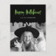 Spooky Halloween photo postcard featuring "Happy Halloween" in lime green hand-lettering. The top of the design features speckled black blood dripping on your photo displayed below. Personalize the front of the bloody Halloween postcard with your name. The back of the postcard features your return address and custom message.