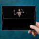 A creepy black Halloween envelope, created especially to match a Halloween party invitation (which you can see here: https://www.zazzle.com/dripping_blood_halloween_invitation-256790896672010790) it features blood dripping down over a black background on the inside, all black on the outside with a skeleton waving on the back flap, and some spooky, evil red eyes staring out from the front!