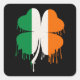 Dripping Four Leaf Clover Irish Flag Square Sticker