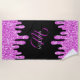 Dripping Sparkles Glitter Pink Black Monogram Beach Towel