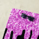 Light purplish pink dripping faux glitter sparkles dripping on black. We use photos of sparkles. Please note we do not use actual glitter!