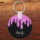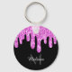 Dripping Sparkles Glitter Pink Black Monogram Keychain