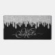 Dripping sparkles silver grey and black Monogram Desk Mat
