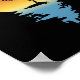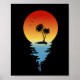 A visually striking digital illustration of a tropical island with coconut trees silhouetted against a glowing sunset. The design features a rich gradient of warm hues transitioning into cool blues, creating a mesmerizing reflection that appears to drip downward, blending surrealism with minimalistic aesthetics. Birds soaring in the sky enhance the tranquil yet artistic vibe, making this piece perfect for modern decor, apparel, or digital prints. The presence of the sea surrounding the island adds depth and a serene tropical feel.