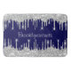 Drips Glitter Effect Blue Navy Courage Name Silver Bath Mat