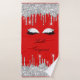 Drips Glitter Silver Red Lashes Hello Beauty Bath Towel Set