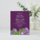 Custom drive by baby shower invitation designed with beautiful purple petunia floral designs in colourful eggplant purple background with text templates for name & other fields which you can edit to personalize! You can change the background colour if you wish!