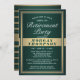 If circumstances prevent the usual celebration, connect with family and friends from a safe distance with a stylish drive-by or drive-through retirement party! All text on this template is simple to personalize for a social distancing car parade or virtual zoom video conferencing event with online internet chat. It's also possible to include a personal message if needed due to a cancellation or postponement. The green, white and gold design features a modern ombre background, faux foil border & stripes, elegant script calligraphy, and vintage art deco inspired typography. Please note that the gold is printed colour, not metallic foil. This invitation template is set up for a retirement, but can also be for a going away party.