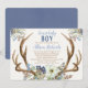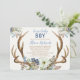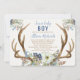 Drive-by rustic antlers blue green floral boy baby invitation
