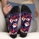 Blue novelty driving instructor socks patterned with L-plates, steering wheels and tyre skid marks.