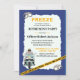 Invitation humoristique à la retraite Bleu et Jaune pour un policier. Design a un policier sur une moto, une ligne de police jaune ne croisent pas graphique, les menottes et les mots gel. Facile à customiser avec les détails de votre fête.