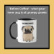 Commencez votre journée avec un soupçon d'humour et de gentillesse avec cette "Drôle avant le café après le Carlin de café Mug." Cette délicieuse tasse présente un adorable carlin en colère avec les mots "Before Coffee" d'un côté, et un carlin heureux avec les mots "After Coffee" de l'autre côté. Cette tasse unique capte sans effort les expressions ludiques des carlins, ce qui en fait le compagnon parfait pour votre routine café. Faites plaisir au café avec cette tasse accrocheuse. Que vous soyez en train de siroter votre café du matin ou de prendre un repas de midi, notre boug Avant le café après le Carlin du café apportera une touche d'humour à votre rituel quotidien du café. Laissez les expressions contrastées des carlins refléter vos sentiments pré et post-café, créant un début léger et amusant à votre journée. Offrez cette tasse qui réchauffe le coeur à tout amateur de café ou gardez-la pour vous-même, et profitez des sourires qu'elle apporte avec chaque gorgée.