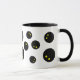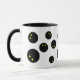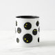 Drôle squash balle imprimer un cadeau de tasse de café pour joueur. Boules de courges noires avec double point jaune. Personnalisez avec votre propre texte en option. Conception sympa pour les amateurs de squash, entraîneur sportif, collègue, collègue, enfants, entraîneur, ami, père, mari, femme etc. Coupe cool avec poignée noire et couleur intérieure.