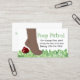 Drôle chien nettoie le carte de visite fait en blanc avec des graphiques de pieds marchant sur un tas de caca de chien, sur l'aquarelle graphique de l'herbe. Personnalisez le texte personnalisé, avant et arrière, pour vos besoins de petite entreprise.