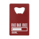 Le cadeau parfait pour votre père, frère, oncle ou grand-père qui aime raconter des blagues... même les blagues qui sont si mauvaises que vous ne pouvez pas vous empêcher de rire. C'est un grand cadeau pour l'anniversaire, les vacances, la Fête des pères, Noël, Hanoukka, ou toute autre occasion spéciale. Donnez au père que vous connaissez le cadeau de rire avec son propre clip d'argent de Bad Dad Joke. Comprend des options de cadeaux assorties et la couleur arrière - plan peut être changée.