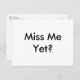 Le message dit "Miss Me Pourtant ?" Vous pouvez changer le message à tout ce que vous voulez dire. En utilisant une police sans empattement, sans empattement, en noir sur blanc, vous pouvez également changer les polices et les couleurs. Faites de cette carte postale simple votre propre. Ou envoyez-le tel quel, pour un effet sous-estimé.