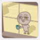 Un autocollant amusant d'un type avec une tasse regardant par la fenêtre de façon impassible.