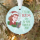 La femme rétro et souriante de ce drôle de ornement à deux côtés de Noël tient une bouteille de rhum et dit, "Je mets le RUM dans Pa-Rum Pum Pum Pum Pum." Elle porte un chapeau de Père Noël. Si l'idée même de la saison des fêtes vous donne envie de boire, alors c'est le design hilarant pour vous.