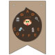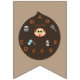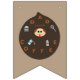 Ce magnifique bunting présente un dessin d'un papa qui est un monstre de café. Son visage est à l'intérieur d'une grosse goutte de café et il a une langue déplaisante et commence à devenir chauve. Le sucre, le lait, le café et une cuillère l'entourent, tout ce dont il a besoin pour sa boisson préférée. Le texte marron clair dit, "Papa aime le café".