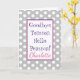 Une carte de retraite amusante avec un design à points polka sur un arrière - plan gris clair (couleur argent) avec une grande zone de texte avec une bordure violette et rose avec une citation de retraite amusante "Adieu tension, bonjour pension". Une belle carte humoristique pour la famille et les amis qui prennent leur retraite. Tout le texte peut être modifié pour customiser la carte puis personnaliser en modifiant le nom et le message à l'intérieur duquel se lit actuellement : "Je vous souhaite une longue et santé retraite! " Les couleurs peuvent également être modifiées si nécessaire, il suffit d'aller sur le bouton personnaliser plus loin.