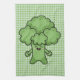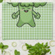 Cute green cartoon broccoli with adorable happy face. Les Background, c'est vert et blanc gingham.