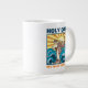 Une vache drôle sur une tasse jumbo. Utilisez "Personnalisez ce modèle" pour changer "SAINT VACHE ! MY MUG IS IMMENSE" texte et créer un message unique et customisé ; les changements de texte sont reflétés de part et d'autre. Célébrez votre gigantesque tasse avec une blague visuelle avec une vache spectaculaire en robe, tenant un escroc de berger et un défilé religieux, parsemant les vagues avec un coucher de soleil doré derrière.