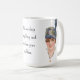 This unique mug features a vintage image of a woman in a stunning hat, with text that says, "Let me drop everything and work on your problem." The mug type, background colour, and text, can all be customized to fit your needs.
