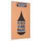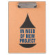 One huge iconic black drop, holding blue text "IN NEED OF NEW PROJECT" on fluffy looking one colour background. Solid background colour can be replaced.