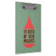 One huge iconic red drop, holding brown text "IN NEED OF NEW PROJECT" on a fluffy textured background. Solid background colour can be replaced. Text can be edited.