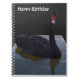 Image est un cygne noir nageant dans un bassin de dimension d'eau. message d'anniversaire inclus