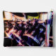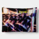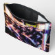 The artwork by ZoeSPEAK on this large Accessory Pouch is an original photograph of a drum set. The shiny black drums with their silvery rims reflect the colours of the lights in the studio, blues, reds and greens. Cymbals above the drums wait to be struck.