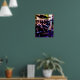 The artwork on this Poster is an original photograph of a drum set. The shiny black drums with their silvery rims reflect the colours of the lights in the studio, blues, reds and greens. Cymbals above the drums wait to be struck. The photo is called “The Drummer”, since the drummer can be found in the picture. But this text can be personalized, or deleted if you prefer.