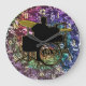 Drummer on Trap Set with Rainbow Music Notes Clock