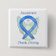 Drunk Driving awareness cause uses a blue ribbon. The awareness ribbon pin features the painting of a blue awareness ribbon angel on a custom button pendant. The awareness angel pendant notes "Drunk Driving Awareness". The blue awareness angel ribbon art lapel pins or buttons can be customized with personalized messages to make great cause buttons for fundraiser pendants, awareness pin gifts, or other special pendant events or awareness lapel pin for the cause's occasions.