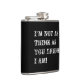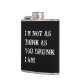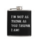 The background colour is black, and the text in a fancy white font says, "I'm not as think, as you drunk I am!" A little drunk humour for your pocket flask!