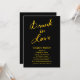 L'invitation à la douche de ce couple amusant est accentuée par "Drunk in Love" dans un trait de brosse en or audacieux, qui a l'air d'une feuille d'or, et rend cette invitation élégante, tendance et élégante. D'autres articles de coordination peuvent être trouvés dans la collection Bachelorette Party Drunk in Love qui contient des t-shirts, tatouages, affiches et flacons mignons.