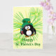 Custom Card with a drunk penguin holding a bottle of booze. Funny St. Patrick's Day. Designed by Janet Palaggi