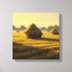 Vintage wall art of dry wheats stacked on a field after harvesting, golden yellow colours and visible oil painting brushstrokes