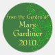 Depuis le jardin de... ces autocollants font de grands étiquettes pour tous vos besoins de conserverie, de cueillette, de conservation et d'embouteillage! L'arrière - plan est vert foncé, avec un design d'aneth. Le texte dit "Du Jardin de" et vous complétez le reste !