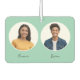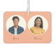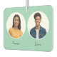 Elevate your car’s style and scent with this reversible, personalized car air freshener. Designed for drivers and their partners, this cool accessory features your own pictures on both the back and the front, in round photo 'frames' with your names elegantly displayed underneath. If you turn to the other side, the drivers have swapped places, so you can simply flip the freshener around to match the driver of the day. One side is peach, the other light green. Perfect for adding an individual touch to your ride while keeping it fresh and stylish.