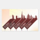 Travel sticker colourful illustration in shapes of Dubai skyline and desert shades.