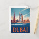 Dubai Marina Skyline & Boat Retro Postcard