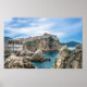 Painting of the fortress walls, rocky coast and blue sea in Dubrovnik, Croatia. Stunning view of Dubrovnik city walls and Dubrovnik old town.