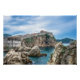 Painting of the fortress walls, rocky coast and blue sea in Dubrovnik, Croatia. Stunning view of Dubrovnik city walls and Dubrovnik old town...