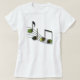 Circuit boards, heart monitors, and flowing vines represent the electronic sounds, slick beats, and pleasing melodies that are mixed together to create the unique blend of sounds found in dubstep, contained within a set of musical notes on a flowing staff. This design is optimized for light clothing, though an alternative exists for dark clothing.